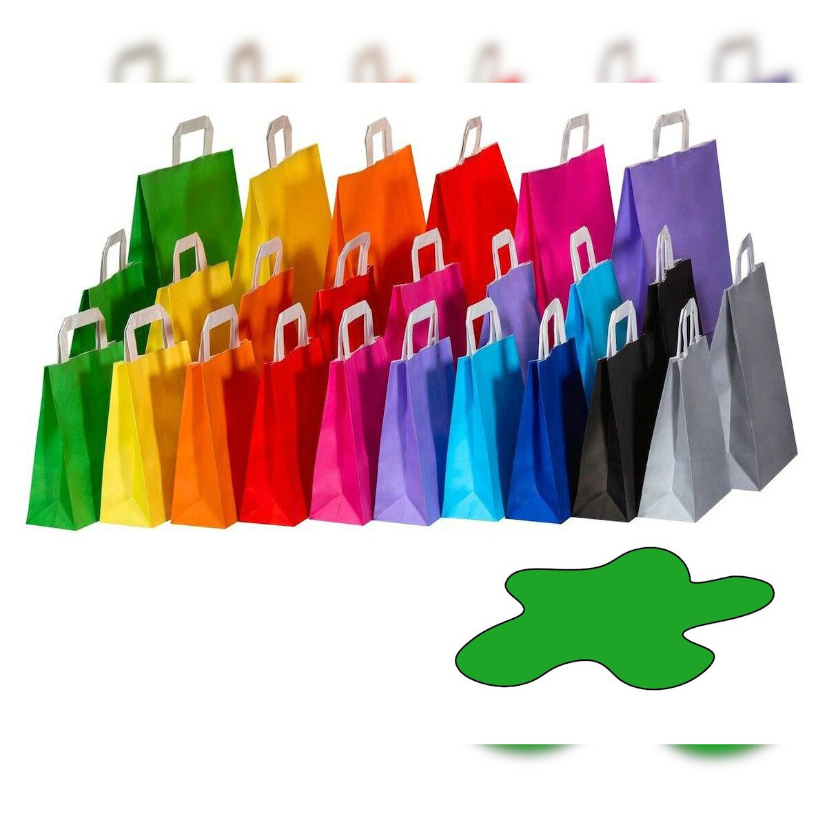 VEPATIM 50x Papiertragetaschen Papiertaschen Flachhenkel 18x8x22cm grün 70gr.