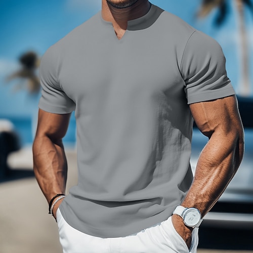 Per uomo Maglietta Manica Corta Scollo a V Estate Semplice Moda Classico Confortevole Scollo a V Casuale Sportivo Ferie Blu chiaro Marrone Scuro Nero Maglietta Top per Uomo