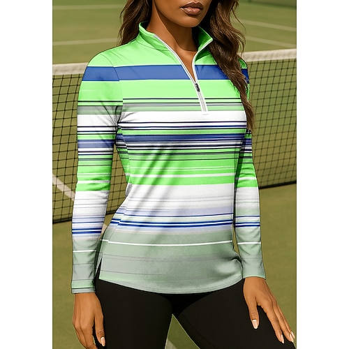 Per donna Geometrico A righe Maglietta Maglietta sportiva Polo da golf Maglia da tennis Manica Lunga Cerniera Floreale UPF50 Resistente ai Raggi UV Alta elasticità Traspirante Tennis Golf Pickleball