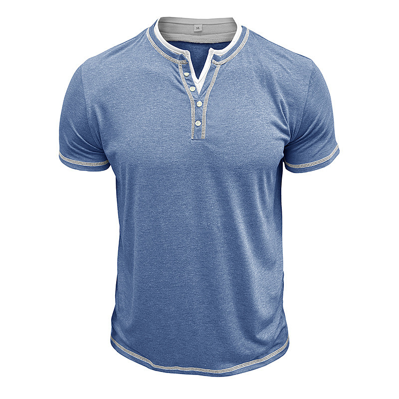 Men's Henley Shirt Tee Short Sleeve Plain Vintage Buttons Fake two piece Henley Outdoor Casual Daily Summer Spring Fall Dark Grey Black Light Blue Henley T-Shirt