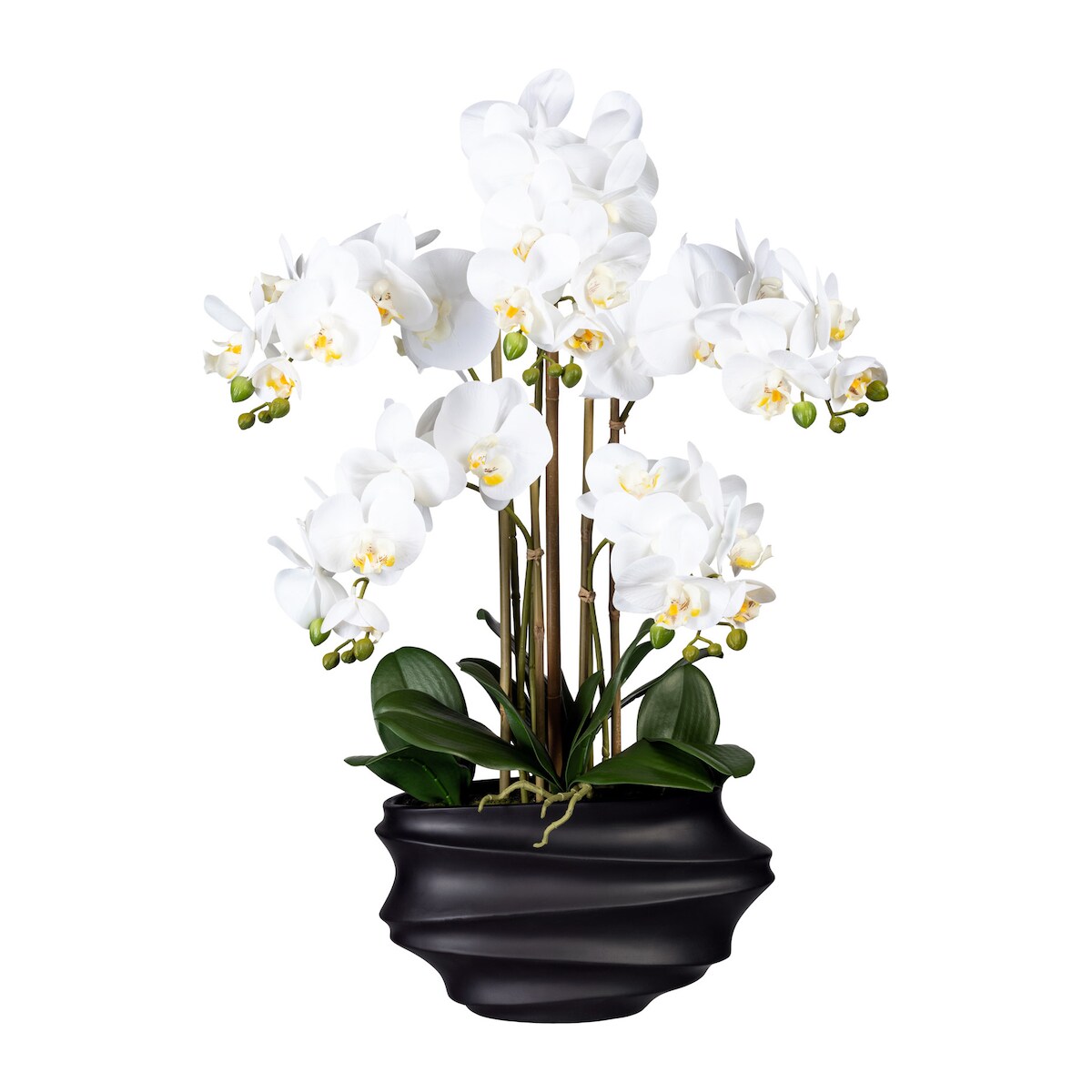 CREATIV green künstliche Pflanze Phalaenopsis x5, ca 75cm weiss, in Kunststoffvase schwarz 30x17x12cm, Real Touch