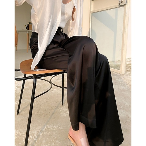 Per donna Gamba larga Pantaloni Eleganti Moda Streetwear Lunghezza intera Naturale Semplice Elastico in vita Confortevole Formale Lavoro Affari Nero Bianco Autunno Vestibilità regolare