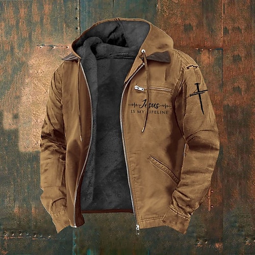Per uomo Felpa con cappuccio a zip intera Giacca in Pile Felpa con cappuccio in pile Nero Verde militare Blu marino Marrone Grigio scuro Con Cappuccio Lettera Croce Cerniera Tasca Casuale Quotidiano