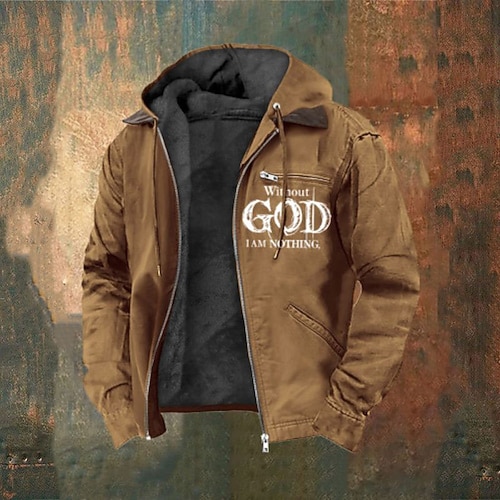 Per uomo Felpa con cappuccio a zip intera Giacca in Pile Felpa con cappuccio in pile Nero Marrone Grigio scuro Con Cappuccio Lettera Croce Cerniera Tasca Casuale Quotidiano Uscire Poliestere