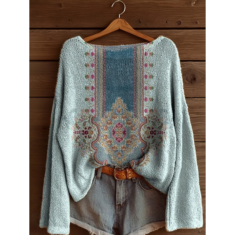 Women's Sweater Casual Soft Floral Graphic Ribbed Boat Neck Knitted Print Long Sleeve Regular Tops Knit Outdoor Daily Weekend Pink Red Spring Fall