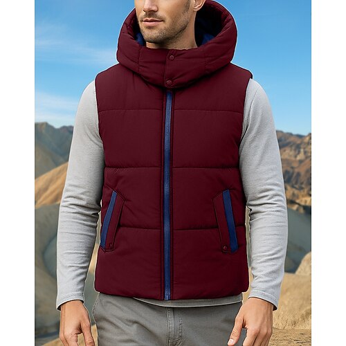 Per uomo Gilet imbottito Gilet termico Senza Maniche Gilet Esterno Calore Termico Inverno Cerniera Poliestere Nero Rosso Blu Reale Caccia Pesca Arrampicata