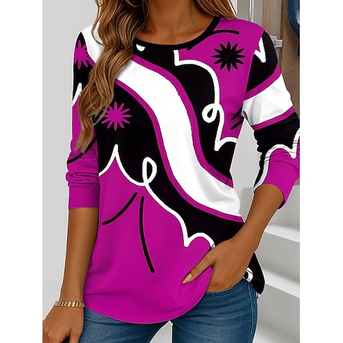Per donna Maglietta Grafico Geometrico Vintage Elegante Casual Manica Lunga Girocollo Top Regolari Quotidiano Stampato Rosso Blu Reale Viola Verde Primavera Autunno Inverno