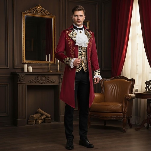 Retrò Vintage Punk Gotico Medievale Cappotto Trench Abbigliamento esterno Principe Vampiro Gentiluomo Nobile Quadri Costume Per uomo Costumi da pirata Reale Stile Steampunk Mascherata Performance
