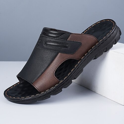 Braune Cut-Out-Sandalen aus Kunstleder für Herren mit verstellbarer Schnalle, stylische, atmungsaktive Abendschuhe für den Sommer und die Freizeit