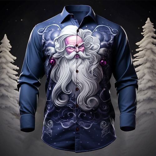 Weihnachten herren santa claus gedruckt hemden santa claus casual täglichen kleidung ausgehen herbstamp;Winter Turndown Langarm grau lila, gelb, burgunderrot S, M, L 4-Wege-Stretch-Stoff-Shirt
