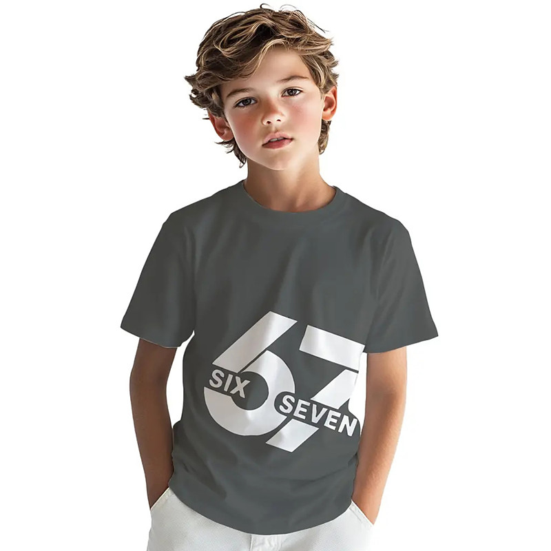 Unisex Boys' 3D Graphic Funny Slang 67 T shirt Tee Short Sleeve 3D Print Summer Spring Sports Fashion Streetwear Kids 4-12 Years Crew Neck Outdoor Casual Daily Regular Fit