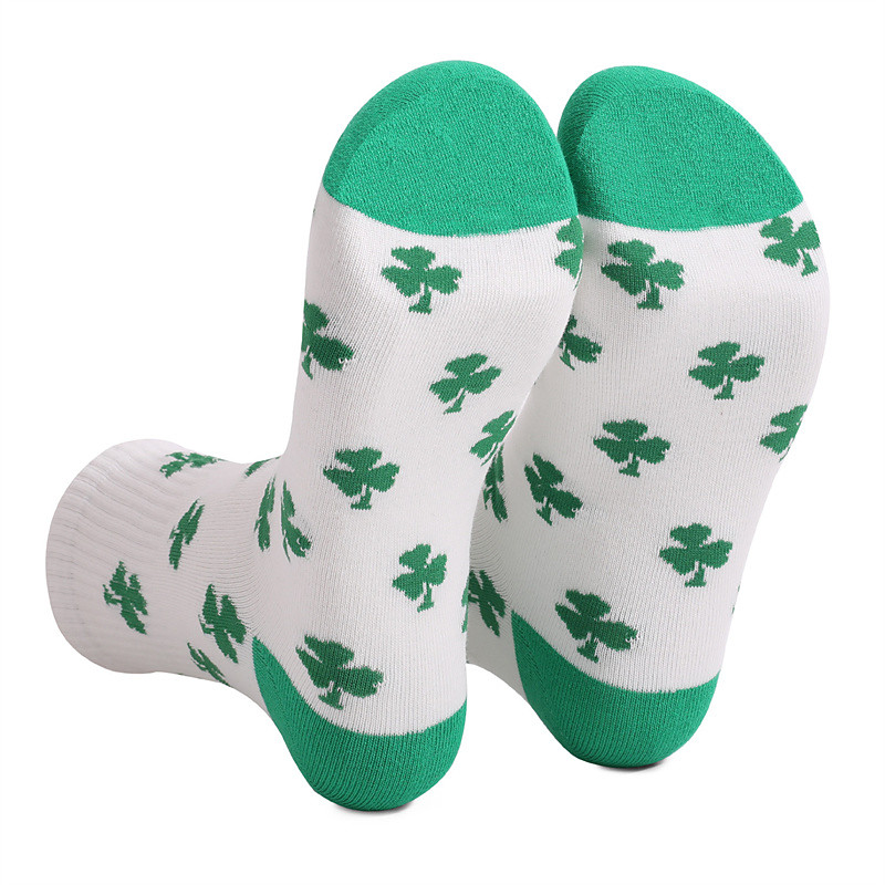Men's 1 Pair Socks Running Socks Casual Socks Black White Color Four Leaf Clover Striped Outdoor Vacation Daily Wear Medium All Seasons Casual St. Patrick's Day