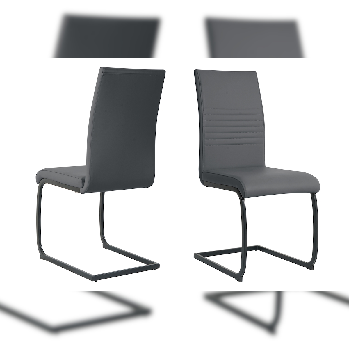 Möbilia Freischwinger-Stuhl 2er Set | Kunstleder | Freischwingergestell | B 42 x T 59 x H 97 cm | grau – schwarz | 21020059 | Serie STUHL