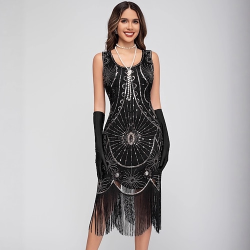 Anni Ruggenti Anni 1920 Lunghezza al ginocchio Abito Flapper Il grande Gatsby Ragazza Flapper Paillettes Frange Scollo a V Costume Per donna Natale Carnevale Festa serale Mascherata Festa a tema retrò