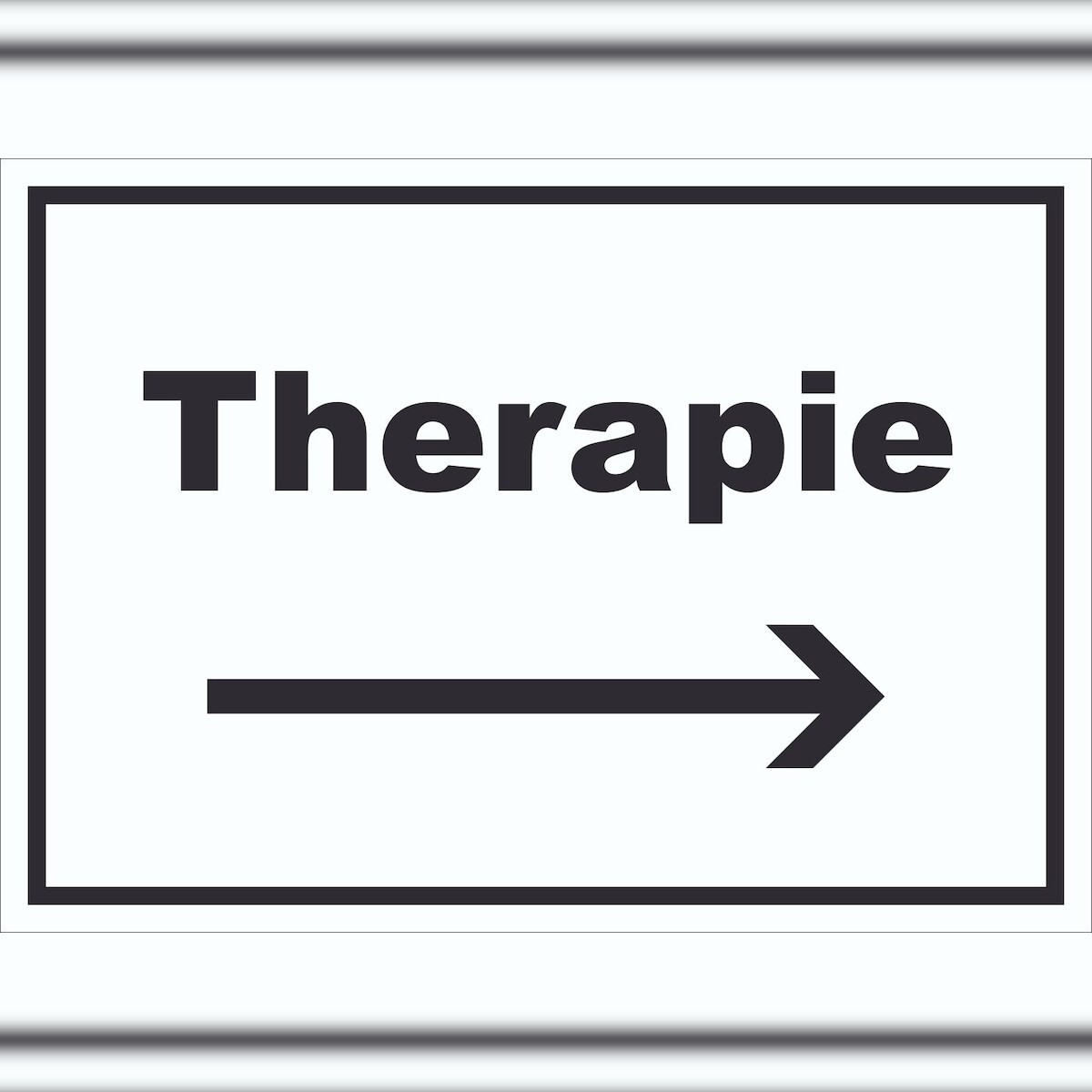 HB-Druck Therapie Schild mit Text und Richtungspfeil rechts Raum Behandlung waagerecht A2 (420x594mm)