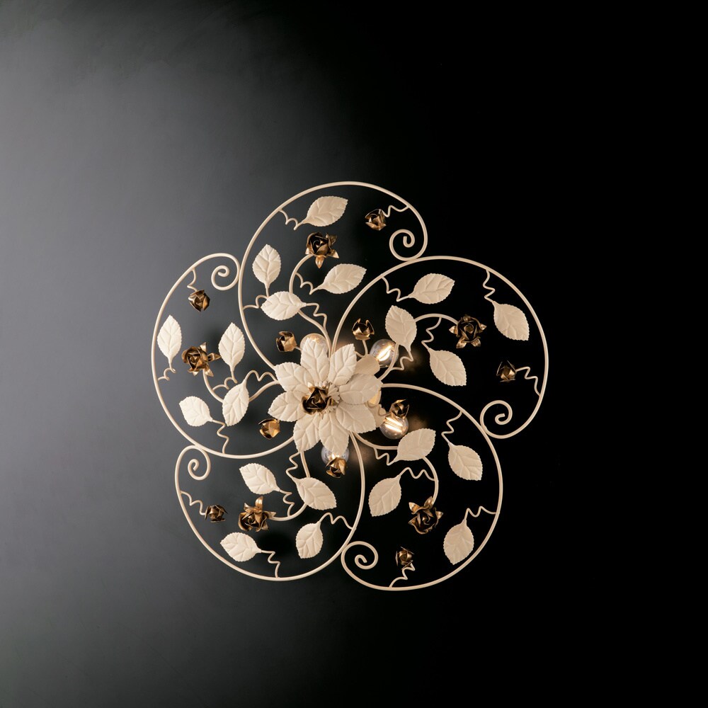 Bonetti Illumina Bella - Deckenleuchte aus elfenbeinfarben gebeiztem und lackiertem Eisen, 5 Lichter, H.22 - Ø65 - BL196-PL5-AV