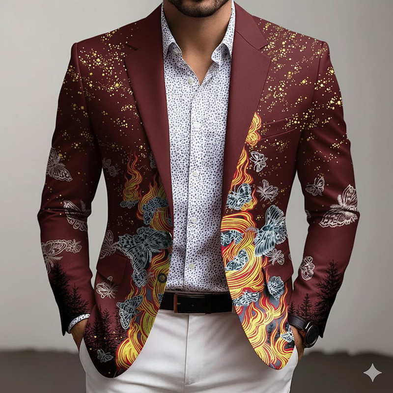 Men's Butterfly Blazer Jacket Coat Comfortable Breathable Artistic Casual Casual Daily Party Pocket 3D Print Buttons All Seasons Notch Long Sleeve Blue Black Red