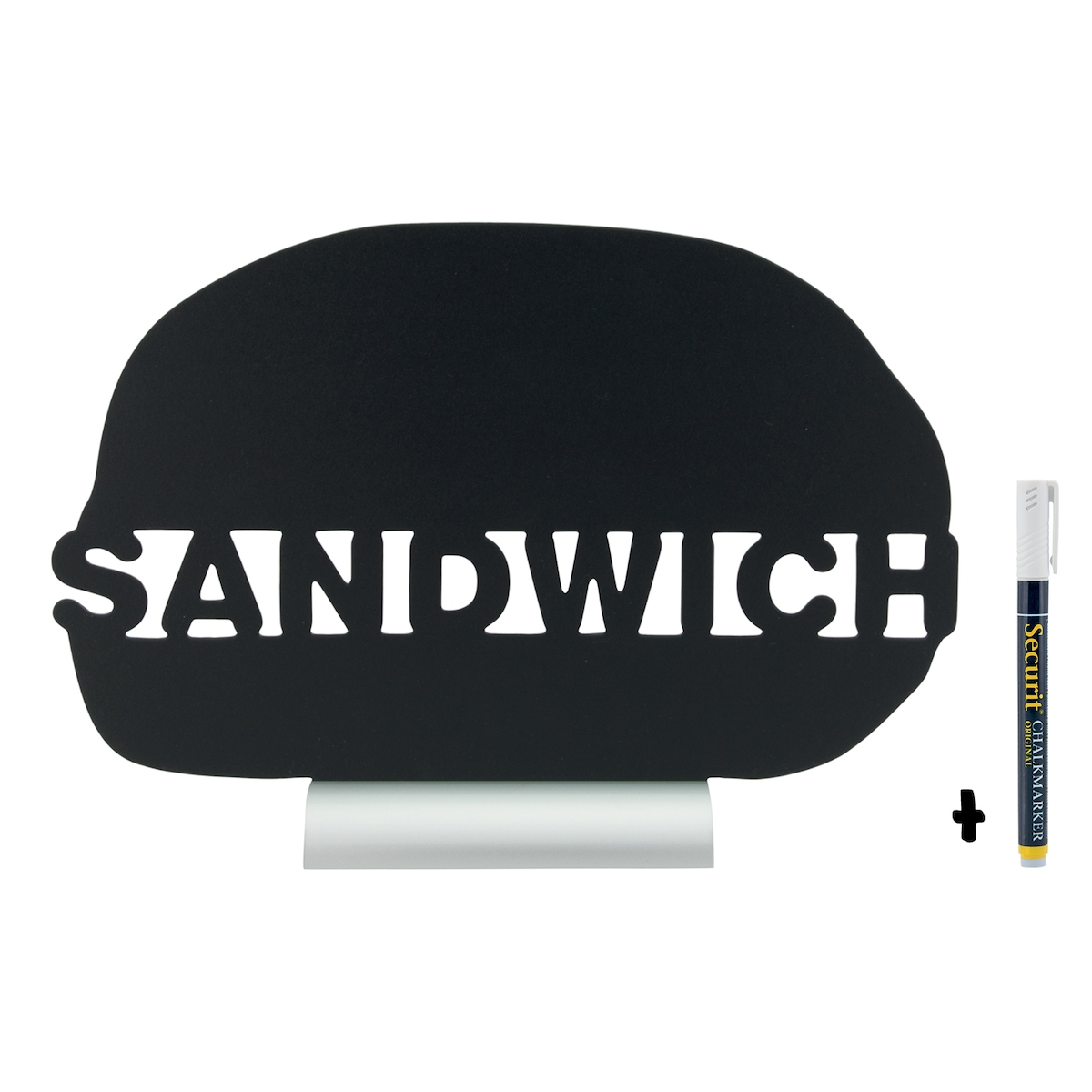 Securit® Silhouette Sandwich Tisch-Kreidetafel – Mit Kreidemarker – Aluminiumfuß