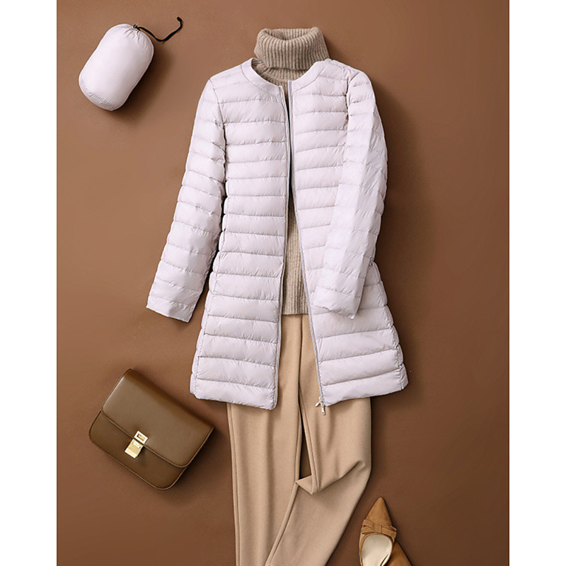 Women's Down Jacket Coat Warm Comfortable Zipper Pocket Fashion Plain Daily Wear Going out Casual Daily Weekend Zipper Long Crewneck Regular Fit Long Sleeve Outerwear Silver Purple Khaki Fall Winter