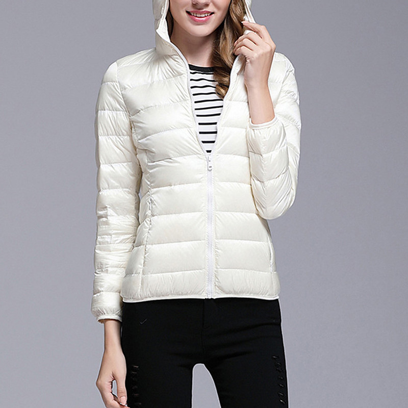 Women's Down Jacket Puffer Jacket Warm Comfortable Zipper Pocket Fashion Modern Casual Plain Going out Weekend Zipper Regular Hoodie Regular Fit Long Sleeve Outerwear Light Pink Black White Winter