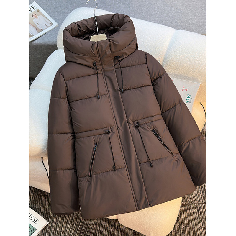Women's Down Jacket Puffer Jacket Quilted Jacket Warm Comfortable Zipper Pocket Fashion Casual Plain Street Daily Wear Going out Zipper Regular Hooded Regular Fit Long Sleeve Outerwear Black White