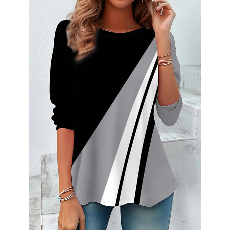 Women's T Shirt Graphic Geometric Fashion Stylish Classic Long Sleeve Crew Neck Round Neck Regular Tops Daily Weekend Print Brown Gray Summer Spring Fall