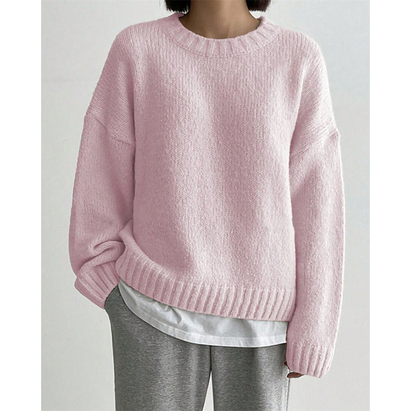Women's Sweater Pullover Elegant Fashion Streetwear Solid Color Crew Neck Knitted Long Sleeve Regular Tops Knit Outdoor Home Work Blue Pink Fall Winter