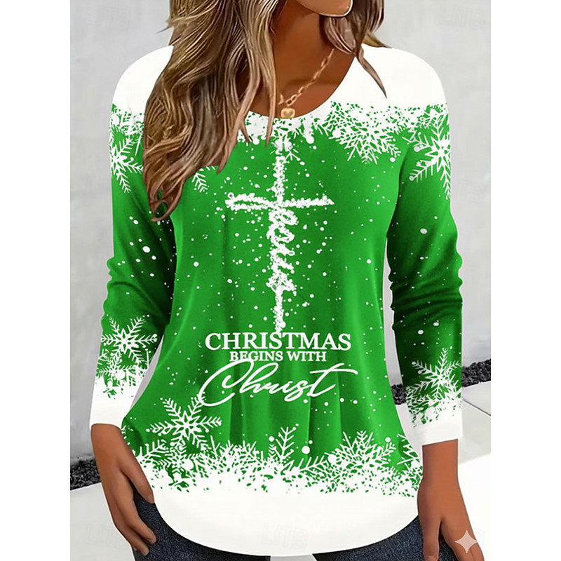 Christmas Women's T Shirt Graphic Vintage Fashion Stylish Long Sleeve Crew Neck Round Neck Regular Tops Daily Weekend Print Black Gold Summer Spring Fall Winter