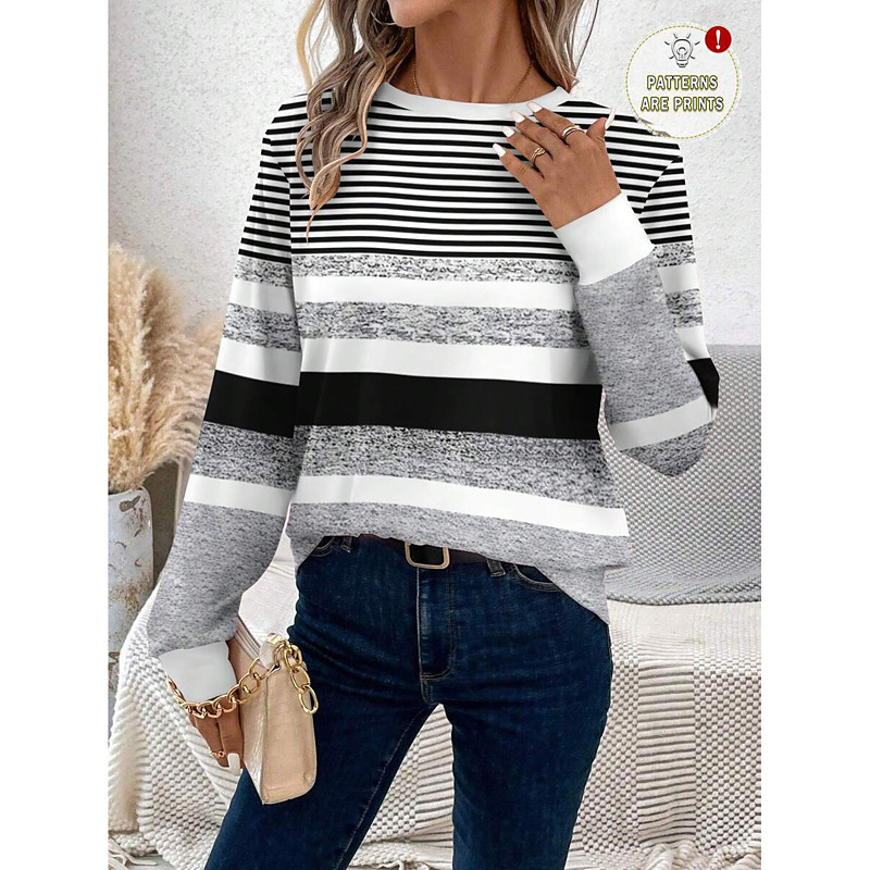 Women's T shirt Crew Neck Long Sleeve Tunic Casual Print Regular Tops Daily Pink Blue Purple Spring Fall