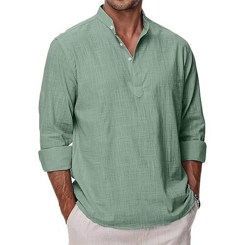 Per uomo Camicia Camicia popover Camicia Estiva Camicia casual Camicia da Spiaggia Nero Bianco Verde chiaro Rosso Blu Manica Lunga Semplice Colletto alla coreana Vacanza Camicia hawaiana Abbigliamento
