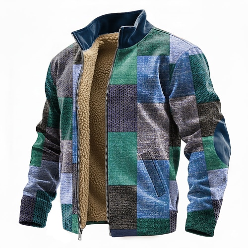 Per uomo Geometrico Plaid Pile Giacca di pelle Felpa Moda Quotidiano Semplice Casual Collo alla coreana Con cerniera All'aperto Vacanza Regalo Uscire Blu Rosso Verde Grigio Tasca Cerniera frontale