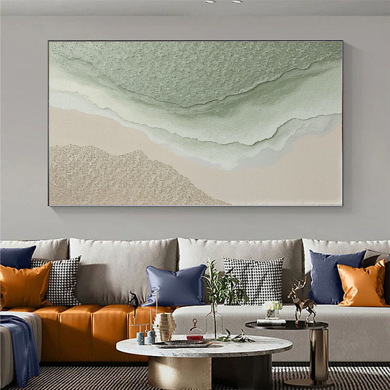 Hand painted Green Texture Sea oil painting handmade Wall Art Large Green Coastal Painting White Ocean Waves 3D Plaster Painting Minimalist Beach oil painting Wall Art painting Living Room Wall Art