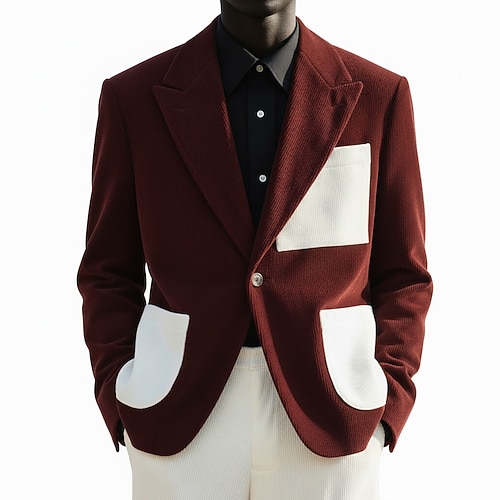 Per uomo Giacca in Velluto a Coste Giacca blazer Collare di chiusura Moda Classico Casual Patchwork Tinta unita Blazer Giallo Borgogna Marrone Vestibilità su misura Monopetto Un Bottone