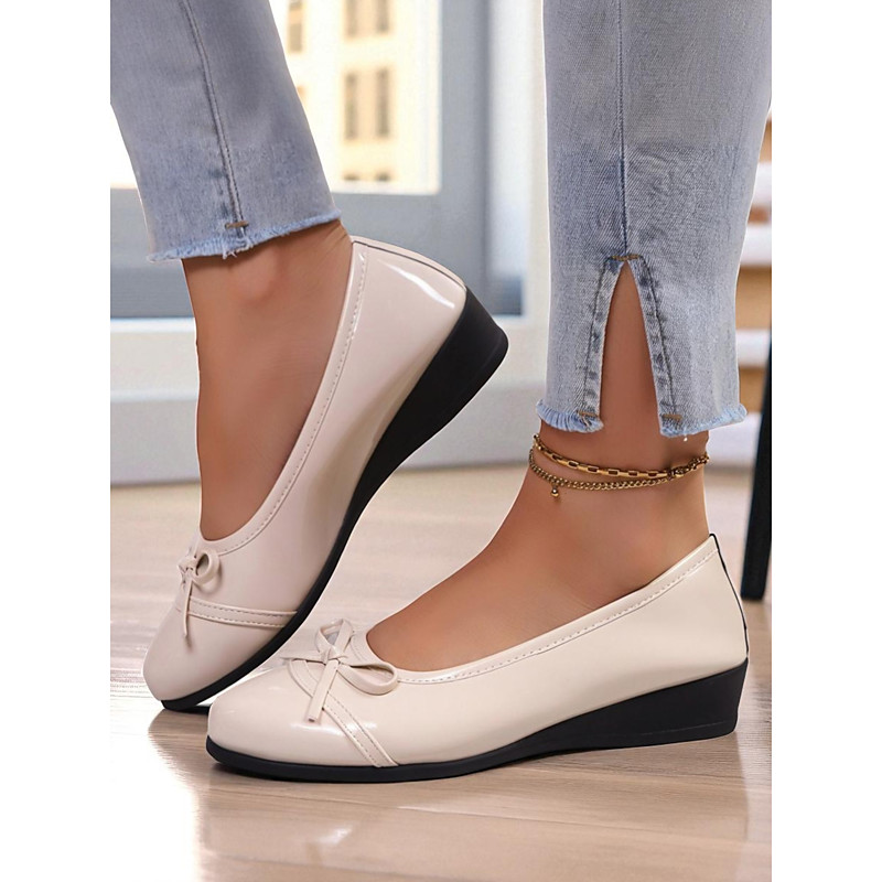 Women's Red Patent Leather Ballet Flats with Bow - Classic Round Toe Slip-On Dress Shoes for Teens and Ladies, Ideal for School, Work, and Everyday Casual Outfits