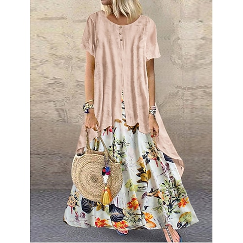 Per donna Abito maxi Abito a trapezio Abito Estivo Casual Quotidiano Vestibilità comoda Floreale Manica Corta Girocollo Giallo Rosa Rosso Viola Estate Primavera Autunno