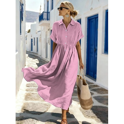 Per donna Abito Midi Abito Estivo Vacanza Casual Boho Quotidiano Spiaggia Ferie Vestibilità comoda Semplice Manica Corta Bavero Blu Bianco Giallo Rosa Estate