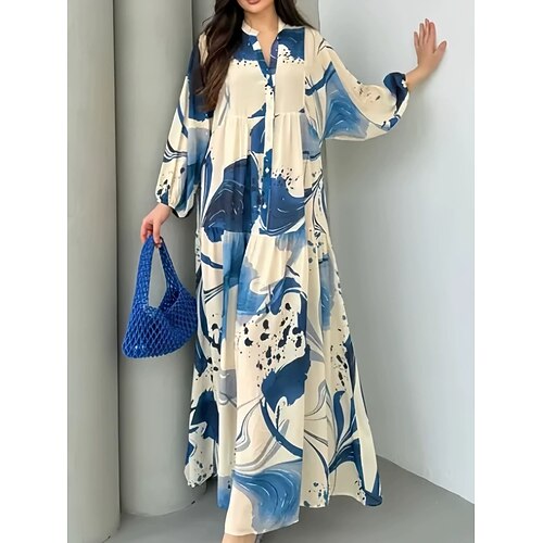 Per donna Abito maxi Abito a Tubino Vacanza Casual All'aperto Uscire Vestibilità comoda Floreale Manica Lunga Collo ripiegato Blu Giallo Fucsia Verde Estate Primavera Autunno
