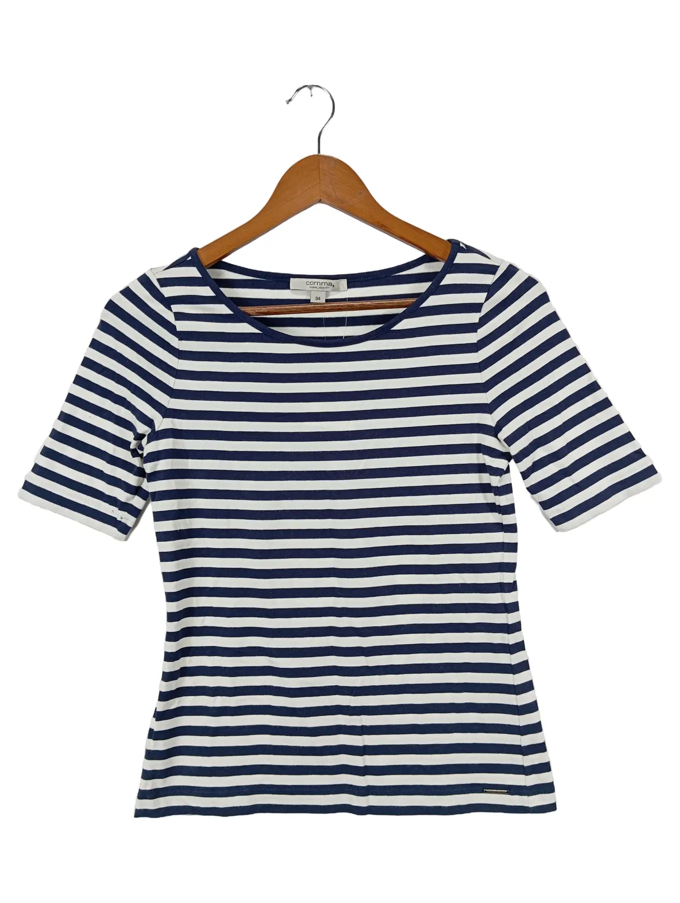 COMMA T-Shirt Damen 34 Blau Weiß Gestreift