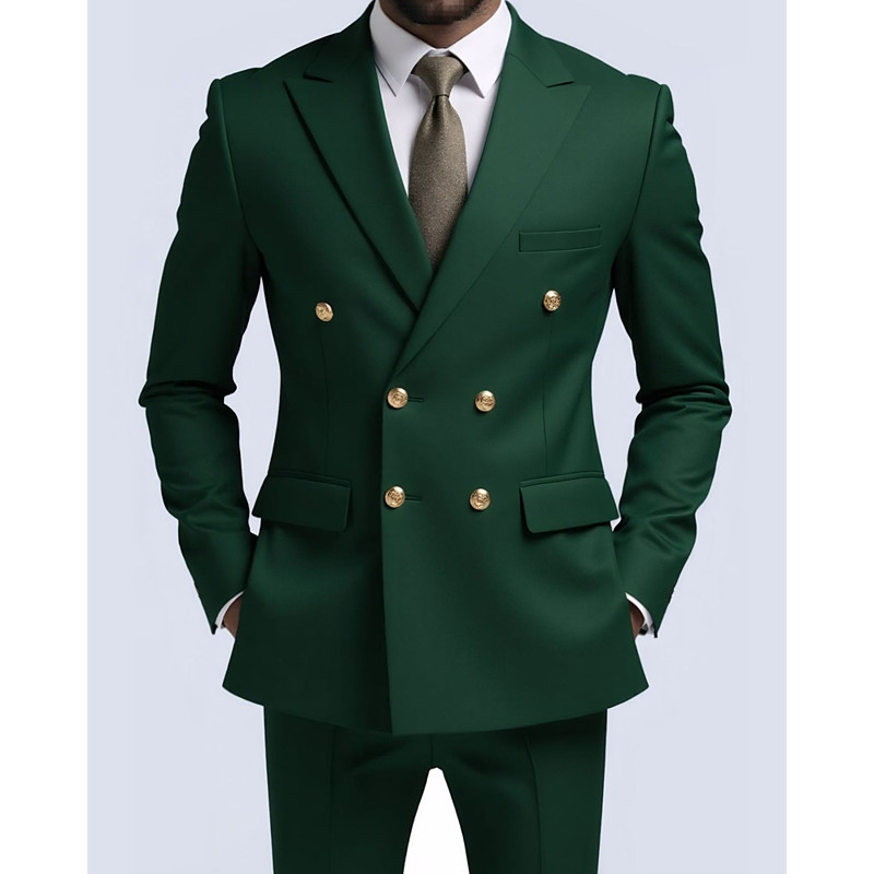 Men's Wedding Party Suits Shawl Lapel Shawl Collar Navy Blue Dark Green Daily Lightweight Solid Colored Tailored Fit 2 Piece Double Breasted Two-buttons