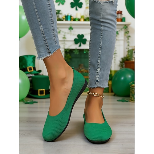 Grüne Flyknit-Ballerinas für Damen – bequeme, dehnbare Slipper, ideal für St. Patrick's Day, Erledigungen, Brunch und Büroalltag.