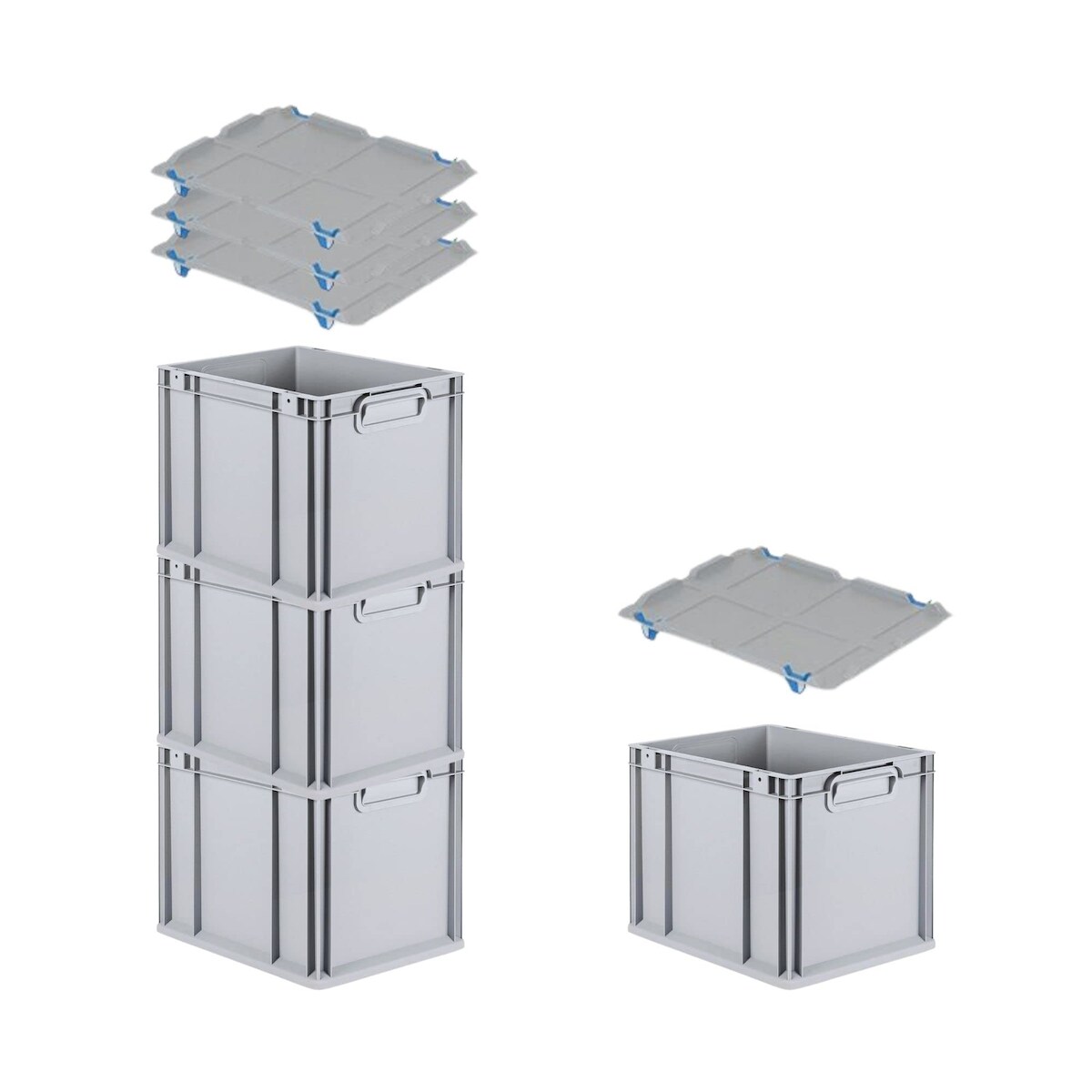 PROREGAL SuperSparSet 4x Eurobox NextGen Economy mit Auflagedeckel & 4x Verschlüsse Blau, Griffe zu, HxBxT 32x30x40cm, 30L, Eurobehälter, Box