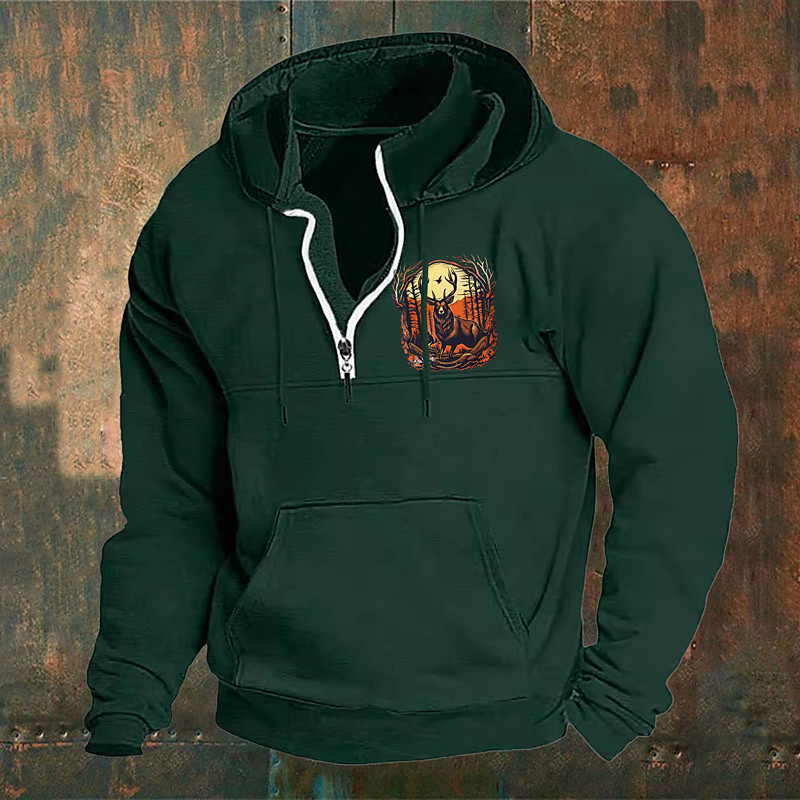Men's Hoodie Wine Navy Blue Green Khaki Light Grey Hooded Elk Front Pocket Quarter Zip Daily Holiday Going out Polyester Streetwear Casual Bavarian Fall Winter Clothing Apparel Hoodies Sweatshirts