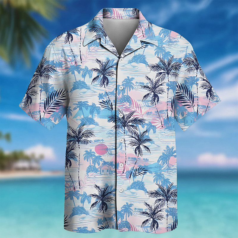 Men's Coconut Tree Tropical Plants Shirt Cuban Collar Shirt Summer Hawaiian Shirt Short Sleeve Hawaiian Vacation Holiday Beach Wear Summer Spring Camp Collar Shirt 3D Print Blue Orange Green