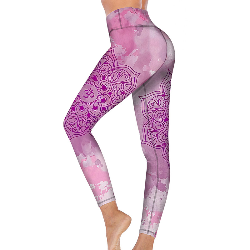 Women's Sports Gym Leggings Yoga Pants High Waist Spandex Green Purple Yellow Cropped Leggings Mandala Tummy Control Butt Lift Clothing Clothes Yoga Fitness Gym Workout Running / High Elasticity