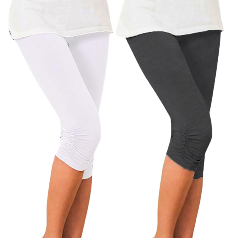 2 Pack Women's Capri Leggings Workout Pants High Waist Bottoms Tummy Control Butt Lift Violet White Black Yoga Fitness Gym Workout Sports Activewear High Elasticity Athletic Athleisure Wear