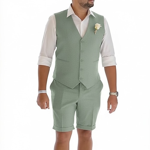 Uomo Casuale Matrimonio Completi in Lino Bavero classico Azzurro cielo Verde salvia Affari Formale Tinta unita Vestibilità standard 2 pezzi Monopetto a un bottone