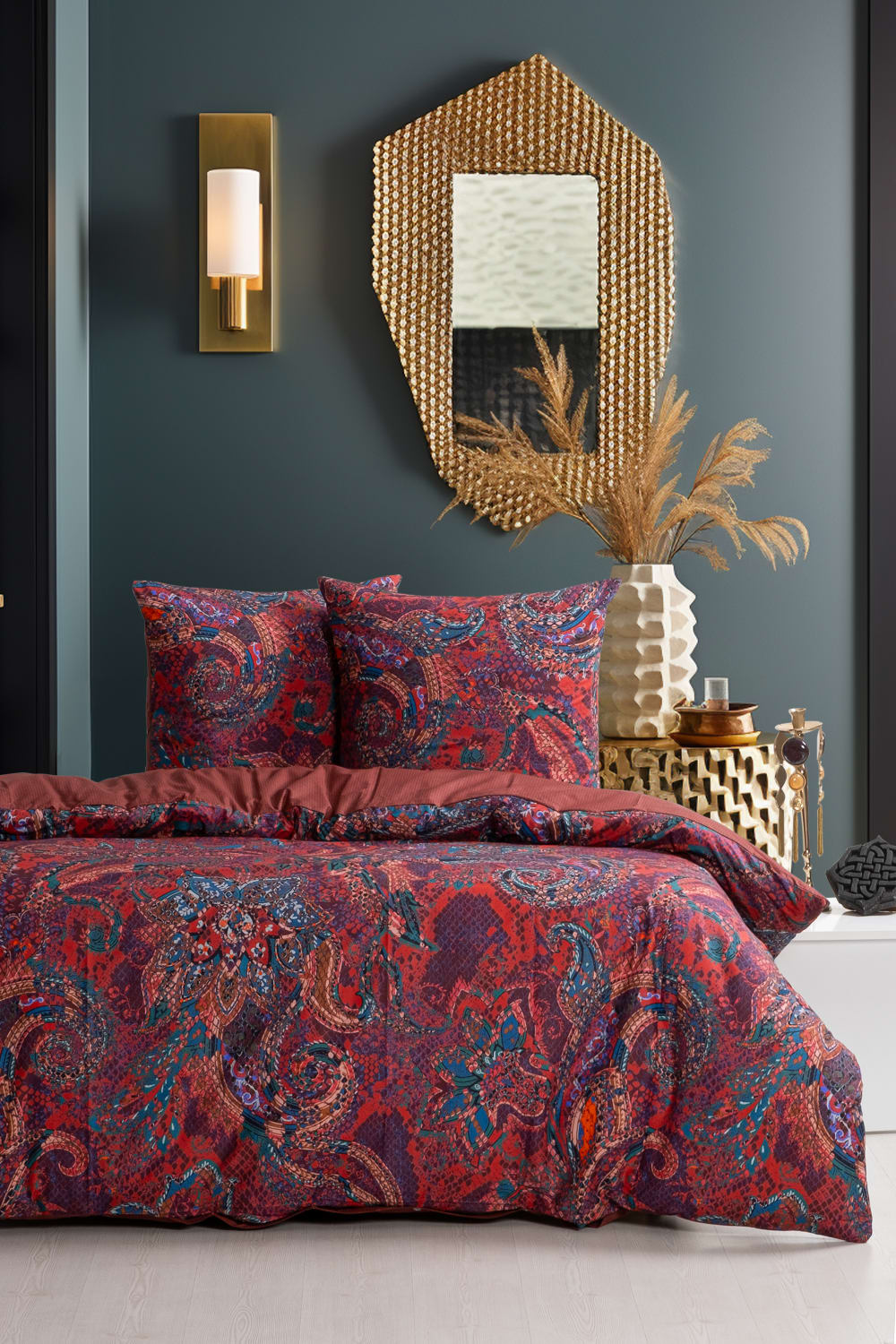 Boxspringbett "Baldwin", rot (rot berry), B:202cm L:212cm, 100% Polyester, SET ONE BY MUSTERRING, Komplettbetten, Boxspringbett, Liegefläche 180 x 200 cm, Duo-Matratze (H3/H4), Kopfteil zweigeteilt