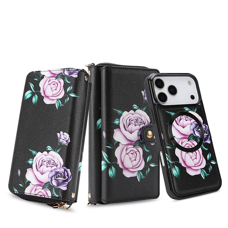 Phone Case For iPhone 17 Pro Max 17 Air 16 Pro Max Plus 15 14 Pro Max Plus 16e 13 Pro Max Wallet Case Magnetic Card Slot Shockproof Retro Flower Floral PC PU Leather