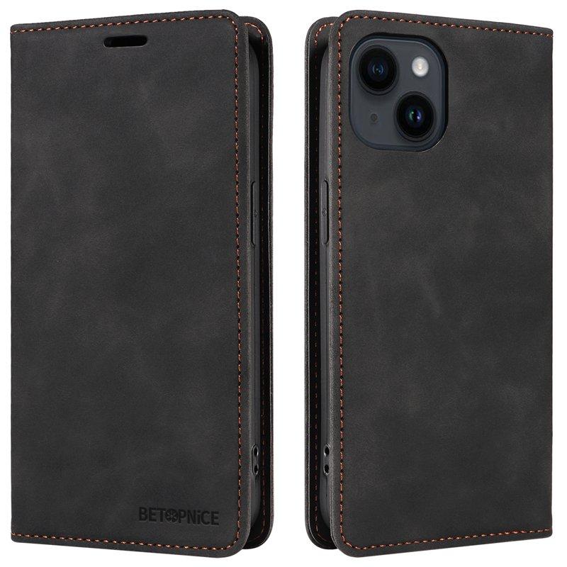 BETOPNICE 003 iPhone 15 Plånboksfodral Konstläder - Svart