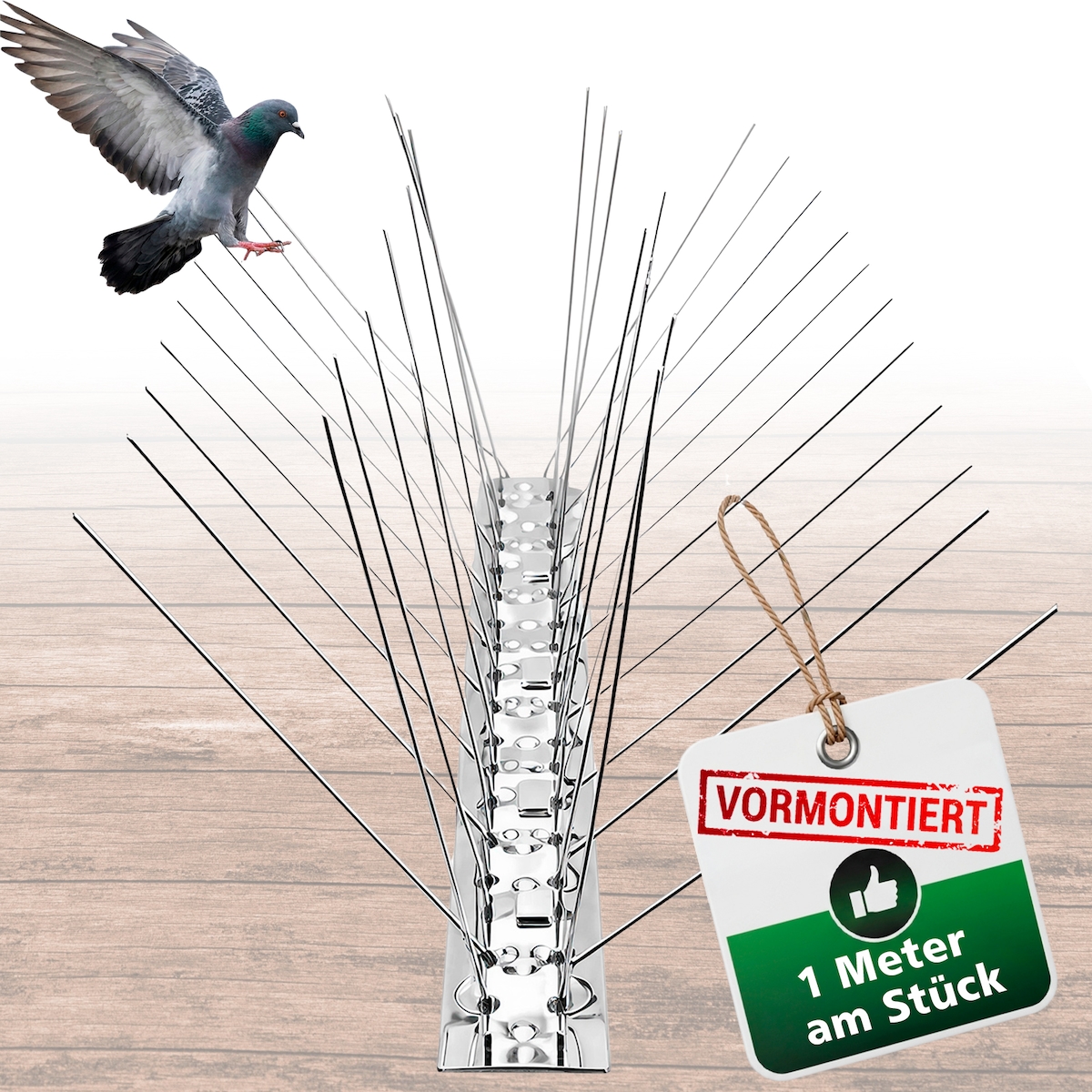 PRIOstahl Taubenabwehr Vogelschreck 4-reihig 1 Meter (1 x 100cm Spikes) Vogelabwehr aus Edelstahl